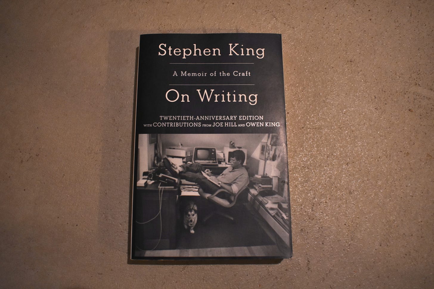 As I’ve said in other places, I’m a sucker for the Free Library bookshelves that people put in front of their houses or businesses. One day, in front of the Mt. Airy Learning Tree at Greene and Hortter Streets, I found a copy of the 20th Anniverary Edition of On Writing. There was a piece of paper wedged in next to the book on which was typed in big font: 11/12. I took the book, of course, and I reread it for the tenth or so time, along with all the extra parts at the end.